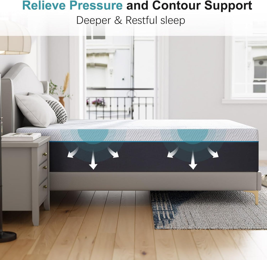 • Material Design: The mattress layers include a Memory foam layer, Elastomer foam layer and high density base support foam for added support and comfort.
